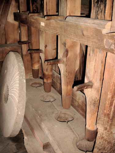 Besonderheit dieser Mühle ist die Stampfe, mit der |