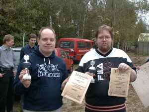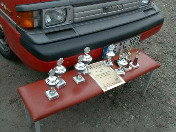 1-5 mit je einem Pokal für den Fahrer und Funkorter,