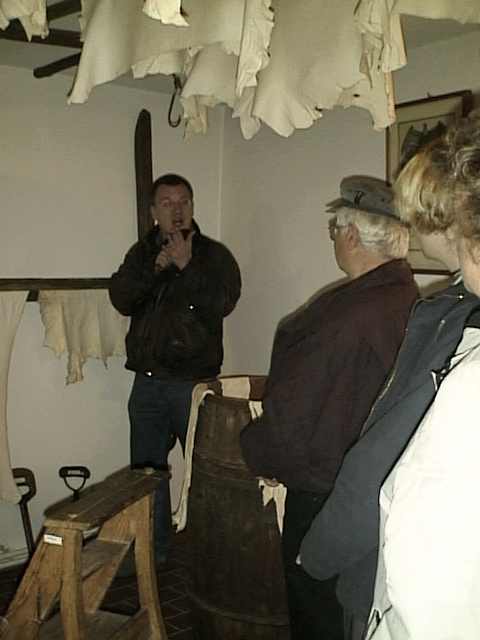 Geschichten von Erzählungen und Sprichwörtern über "Jemandem das Fell gerben, ausäschern, Baden im Äscherzuber und wenn einem die Felle wegschwimmen" sind hier zu erfahren. Aber auch von den üblen Gerüchen der Herstellung der so begehrten Chrom- und Glanzleder ist hier in der Führung zu hören. |