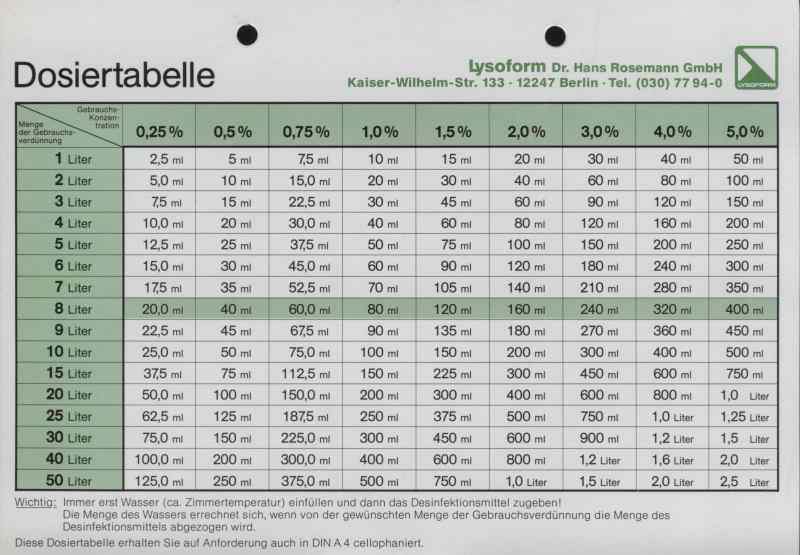 Liter Wasser) bei etwa 30-40°C. Geräte und Anlagen soweit wie möglich